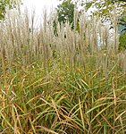 Многолетник с широкими зелеными листьями, изогнутыми на прочных длинных стеблях, и пушистыми красными соцветиями. Цветки позже серебристые. Осенняя окраска листвы в золотисто-желтых и красных тонах. Образует крупную плотную кочку.